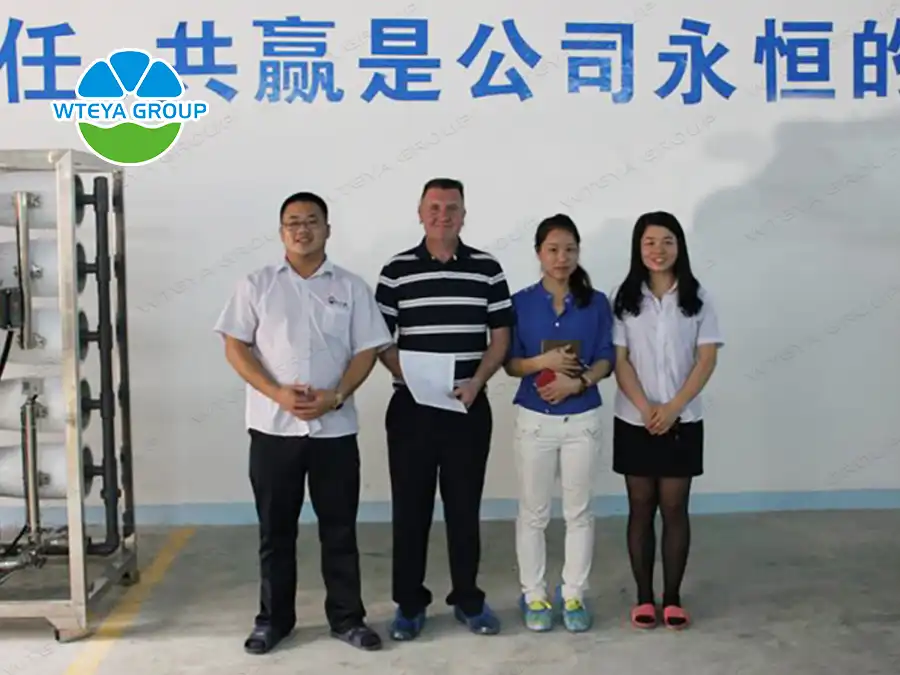 at L'usine de production de Wittia, les clients du Royaume-Uni inspectent soigneusement l'équipement de traitement de l'eau qu'ils ont commandé. Il a vérifié chaque partie de l'équipement une par une pour s'assurer que tous les paramètres techniques étaient conformes auxnormes stipulées dans le contrat. Grâce à des explications techniques détaillées et à une démonstration de fonctionnement,nos ingénieurs montrent la capacité de traitement efficace et l'interface de fonctionnement de l'utilisateur de l'équipement.-